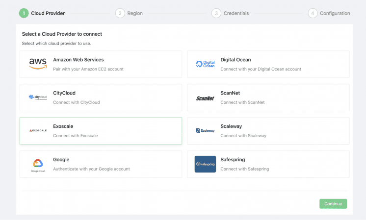 1. Select the Exoscale as the cloud provider.