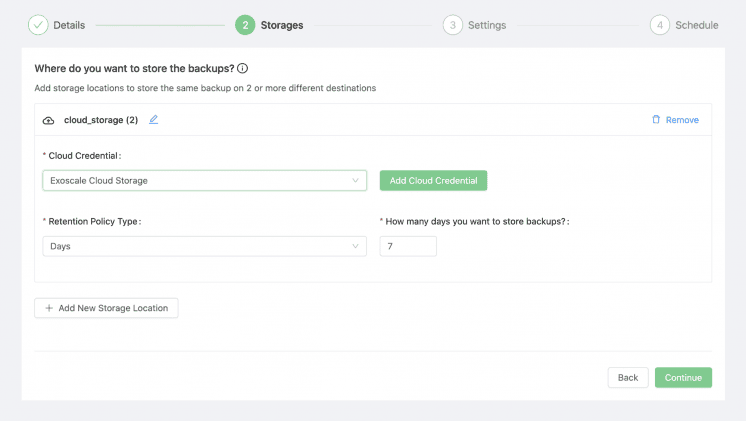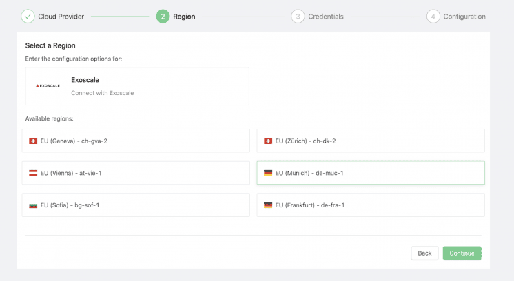 2. Select the backup region among one Exoscale zones.