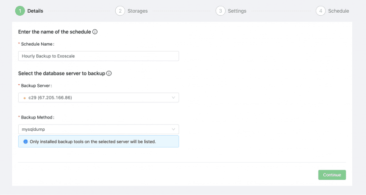 It is extremely well integrated with Exoscale, you can set it up in minutes, and backup your Databases to the Exoscale Object Storage, knowing your data will not leave your country nor our platform, and stay under strict GDPR compliance.