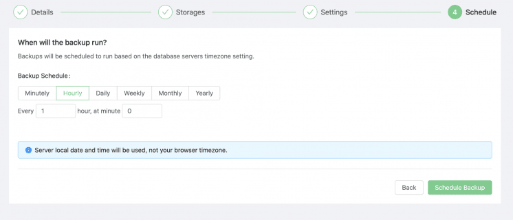 6. Once the agent is installed you can configure your backup Schedule. Enter the details for the backup schedule.