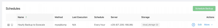 Backup Ninja requires you to set up a Credentials Configuration and a Schedule, and to install an agent on the Instance containing the Database you want to backup. The Credentials Configuration will contain the needed Exoscale API key and secret, while the Schedule is where you will be able to indicate how and when the backup should be performed.
